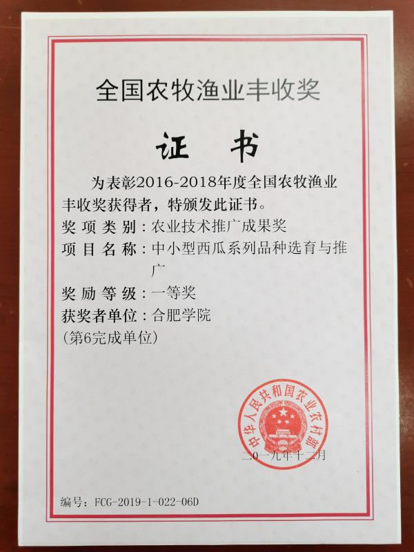 近期,农业农村部发布《关于2016-2018年度全国农牧渔业丰收奖获奖情况的通报》(农科教发〔2019〕4号),表彰奖励在农业技术推广工作中做出贡献的单位和个人。我校参与的“中小型西瓜系列品种选育与推广”荣获农业技术推广成果奖一等奖,这是我校首次获得全国农牧渔业丰收奖一等奖。