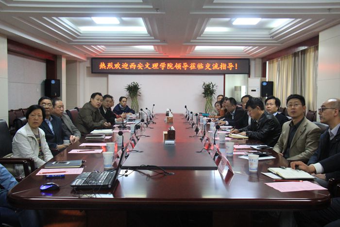 4月3日上午,西安文理学院校长徐可为一行10人来访我校。我校党委书记蔡敬民、副校长刘建中等热情接待了来宾。双方就应用型人才培养模式改革、服务地方机制体制建设、科学研究规划与措施、硕士授权点建设与研究生培养等方面进行了交流。会议由刘建中主持。