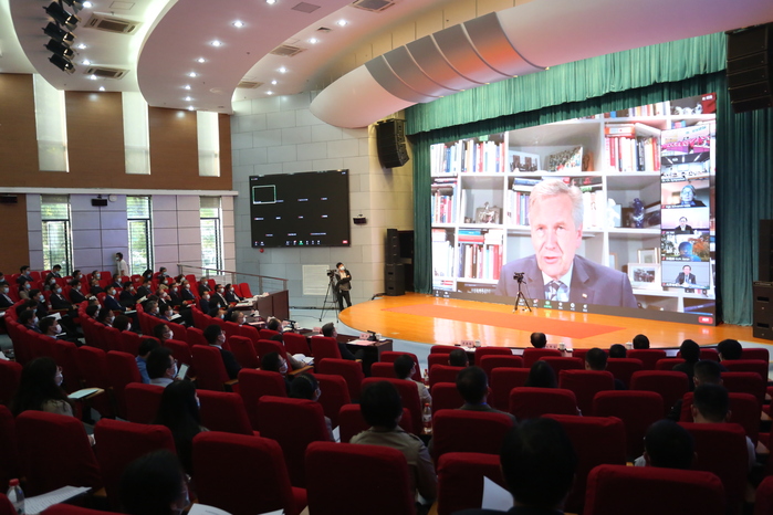 魏尔在致辞中说,37年来,安徽省和下萨克森州一直密切合作,缔结了深厚友谊。合肥学院和奥斯纳布吕克应用科学大学合作数十年,中德应用型高等教育研讨会正是其中的典范,也是安徽省和下萨克森州友谊的基石。一直以来,良好的协商和积极的学生交流带来了无穷益处,非常期待疫情后中德双方能够继续促进青年学生的互相交流。