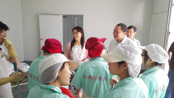 8月5日,合肥学院副校长陈秀教授在生物与环境工程系主任俞志敏教授以及认知实习指导老师的陪同下,前往安徽绿康园食品有限公司,检查生物与环境工程系2013级食品科学与工程专业认知实习工作,并与安徽绿康园食品有限公司鲍祥胜总经理以及安徽省庐江台湾农民创业园管理委员会负责人举行了座谈会,看望了正在生产线上辛苦工作的同学们。