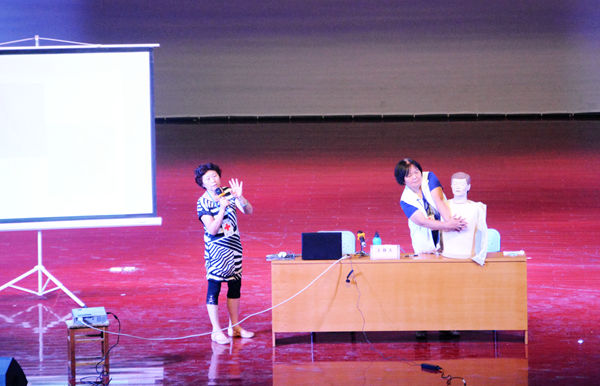 今年6月,我校外语系2013级日语专业马朝霞、朱磊等同学在校内对落水者实施心肺复苏急救的事迹感动了广大师生,也再一次将紧急救护知识普及的重要性拉入了我们的视野。今年,我校新生入学教育中由学生处、公管处特别邀请合肥市红十字会、市疾控中心专家就普及基本救护知识,提高2015级新生面对突发事件的现场应急救护能力,加强青少年自救、互救、急救的能力为新生开展急救知识培训及传染病防治的讲座。为保证培训效果,提高新生参与机会,讲座共分分四场进行。