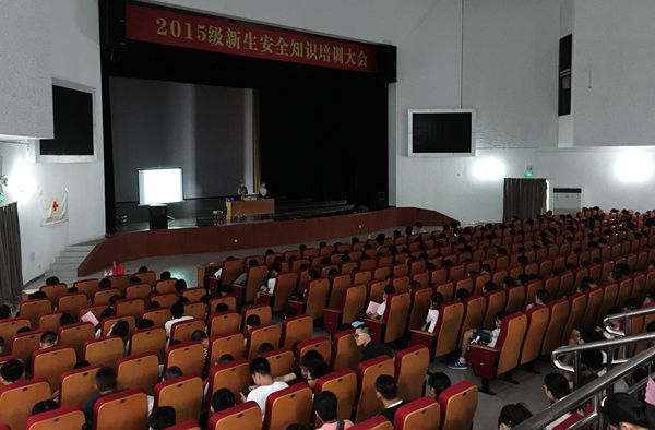 新生入学教育是新生进入大学的第一课,我校2015级新生入学教育较之以往有所不同,主要从大学理想信念教育、专业思想教育、爱校荣校教育、学涯规划教育、廉洁诚信教育、安全防范教育、心理健康常识教育等七个专题入手,9月11日至12日,急救与疾病防控知识培训作为新生入学第一课在校致用礼堂拉开序幕,培训会由学生处副处长许刚主持。