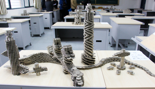 12月20日,合肥学院第二届“力与美”硬币大赛举行,活动现场,创意精彩的硬币搭建令人眼界大开,一件件用硬币垒起的作品十分精致、独具一格。本次比赛历经一个月,96队伍参赛,32支队伍晋级至决赛。比赛结合了艺术的创意设计与建筑的力学原理,拓宽了学生的思维与眼界,展现了大学生们的智慧青春与无限创意。