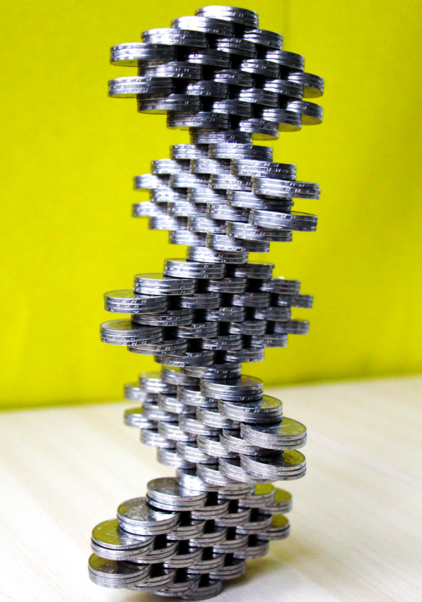 作品《丝绸之路》以优美的流线型结构,高难度的搭建技巧赢得最高分。作品中悬挑出去的部分象征丝绸之路从梵地连接到海上并持续延伸,螺旋上升“龙型”上海中心和包容的“华表”相结合,展现了新时代下激扬进取的民族面貌。简约大气的盘旋结构,别出心裁的镂空设计,作品《回家的路》向我们展示了硬币兼具力与美的独特魅力。11号团队通过先立柱后搭接,并在顶层修饰的方法,率先完成了作品黑暗城堡。13号队伍的作品《教堂是一件充满罗马式建筑风格的作品,它充分利用了镂空、镶嵌和螺旋延伸的设计。以迪拜人工岛命名作品棕榈岛,利用2500枚硬币的拼接咬合,重现了碧海蓝天的美景。