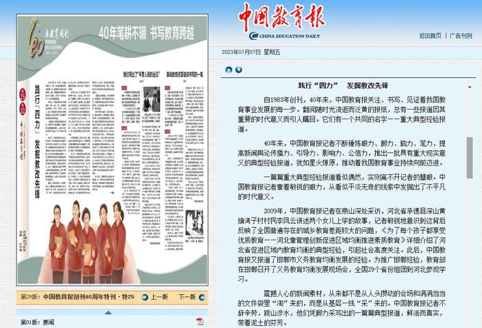 中国教育报 践行“四力” 发掘教改先锋 2023年7月7日