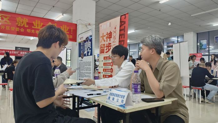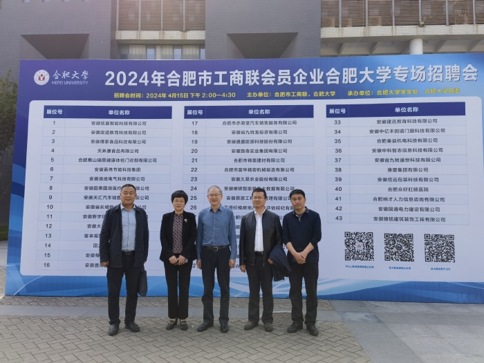 4月15日下午,学校在图书馆一楼就业招聘大厅举办2024年合肥市工商联合会、明光市专场招聘会。党委书记王其东在学生处等相关单位负责人的陪同下到现场了解招聘情况,并与企业面对面交流。合肥市政协副主席、合肥市工商联主席姚亚妹、明光市人社局局长蔡峰等到现场考察。