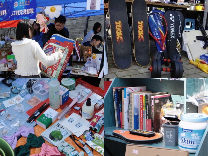 “第一次摆摊,同学们都积极捧场,看到这些东西再次找到新主人,很有成就感!”一位摊主笑着说。“小电扇、小台灯、美妆产品……我买了一堆!前几天看到活动通知,我就把需要购买的物品列了个清单,今天一气呵成。”一位收获满满的同学笑呵呵地展示着手里的战利品。在跳蚤市场上,旧物遇新主,学生们闲置的物品重新得到利用,毕业生们把不方便带走的物品留给了学弟学妹,也将带不走的青春记忆留给了学校。