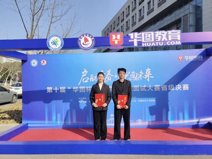 3月20日,“启航青春·职面未来”第十届“华图杯”安徽省模拟面试大赛省级决赛在安徽财经大学落下帷幕,我校张钰颖、陈宇豪同学分别荣获银奖和铜奖。
